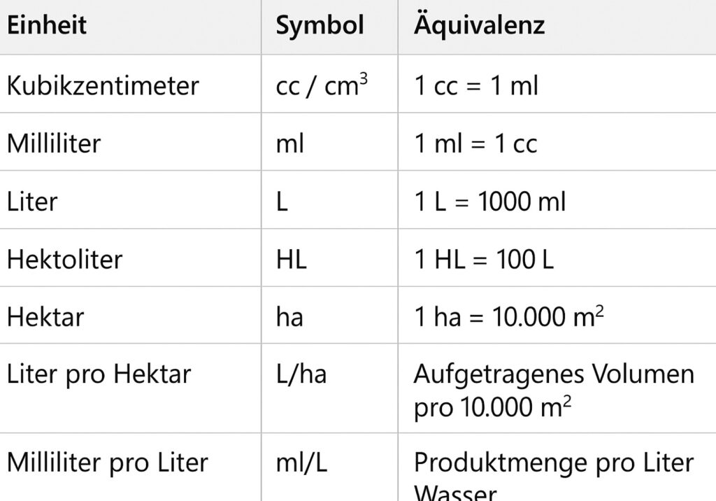 Arten von Messungen und Einheiten bei der Dosierung von Pflanzenschutzmitteln